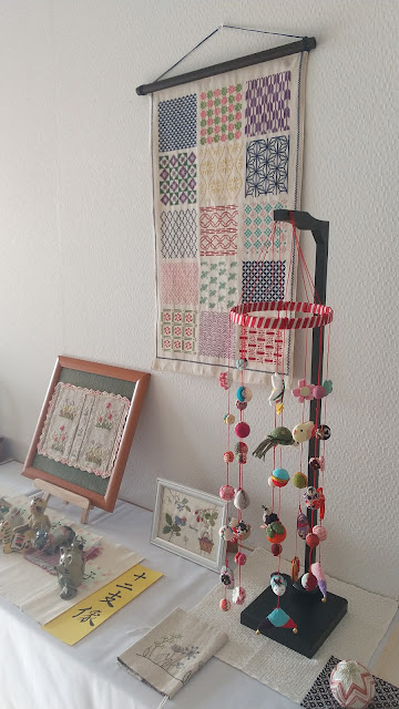 ☝ 今回の展示は、南部町宮前にお住まいの永栄紀文さん、伊津江さんご夫妻が趣味で作成しておられる「陶芸」や「刺しゅう」「小物」です。